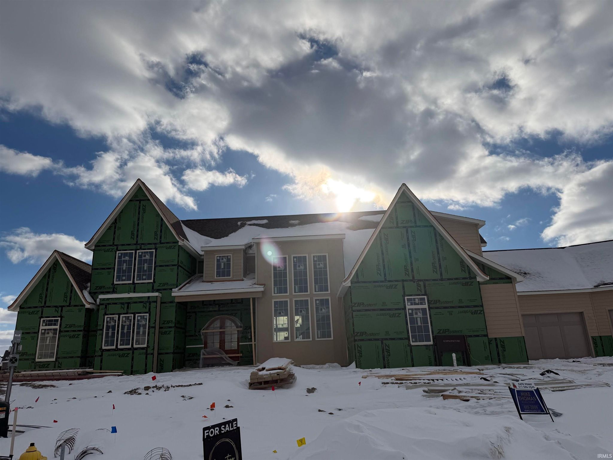 Construction is well underway on Cornerstone Custom Homes' new Southwest Fort Wayne model home. Set to finish late spring 2026, this stunning space holds almost 5800 sq ft, massive 4 car garage and a finished walk up basement. It sits on a spacious lot on a quiet culdesac, while enjoying an expansive pond view behind. Master suite on the main floor with laundry in closet, three bedrooms upstairs and one bedroom in basement. Cornerstone has partnered with a national designer for the interiors-- we cannot wait to see it come alive! -- this home can be secured while under construction!